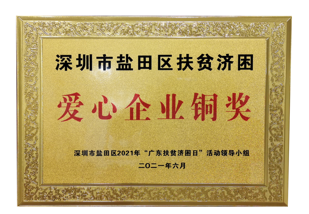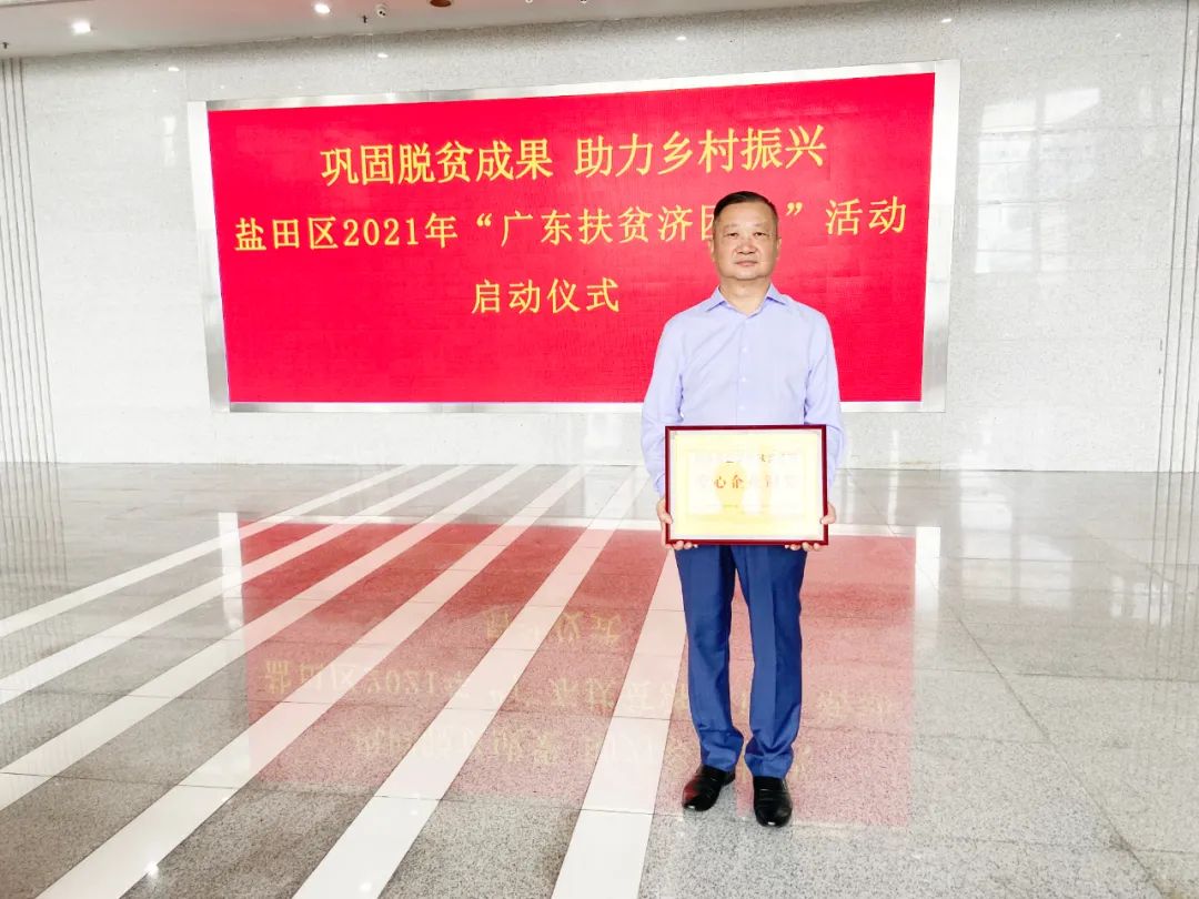 In order to actively respond to the national call, consolidate the achievements of poverty alleviation and help rural revitalization, on June 30, 2021, Yantian District held the launch ceremony of the "Guangdong Poverty Relief Day" in 2021. Chen Qing, Secretary of the CPC Yantian District Committee, Qiao Zhi, Director of the Standing Committee of the District People's Congress, Qiao Hongbin, Chairman of the CPPCC District and Office Director of the CPC District Committee (District Government), District Deputy Secretary Gu Yunhong and other leaders attended the launch ceremony, Baohengtong Group was awarded the "Shenzhen Yantian District Poverty Allowance Enterprise", group chairman Xiao Dejun attended the event and accepted the award.