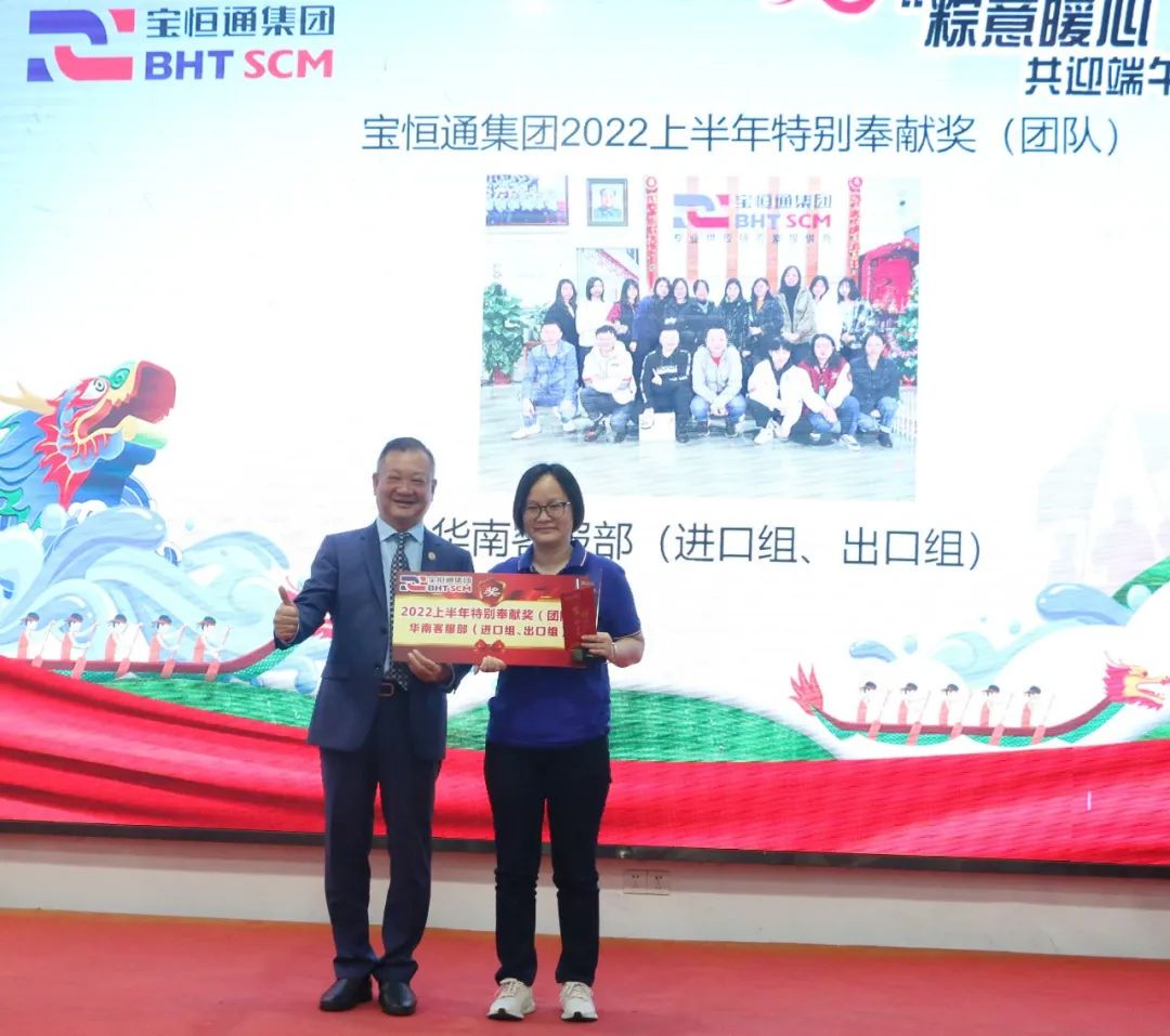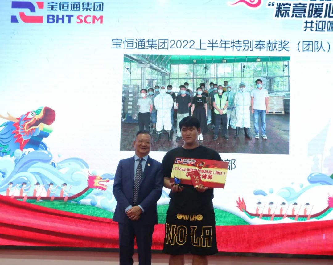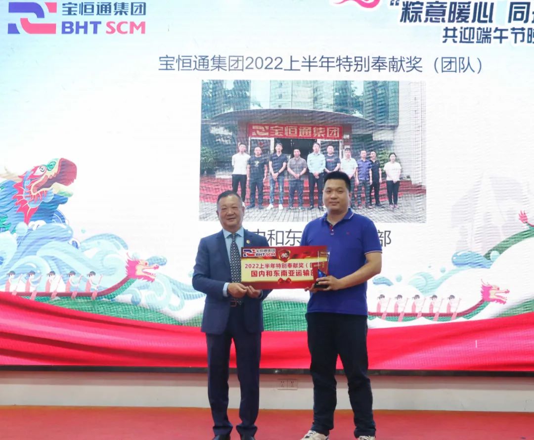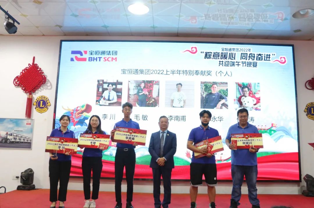 In order to welcome the traditional Dragon Boat Festival, convey warm festive care, enrich the cultural life of employees, thank employees for their hard work, and commend and reward excellent teams and individuals in the first half of the year, on the evening of June 1, 2022, Baotong Group held the Dragon Boat Festival dinner activity of "Warm Zongyi, Forge ahead together" in Yantian Auman No.1, Shenzhen. Mr. Xiao Dejun, chairman of the Group, and about 130 employees from the group headquarters, business units and south China region gathered together to share the festival feast.